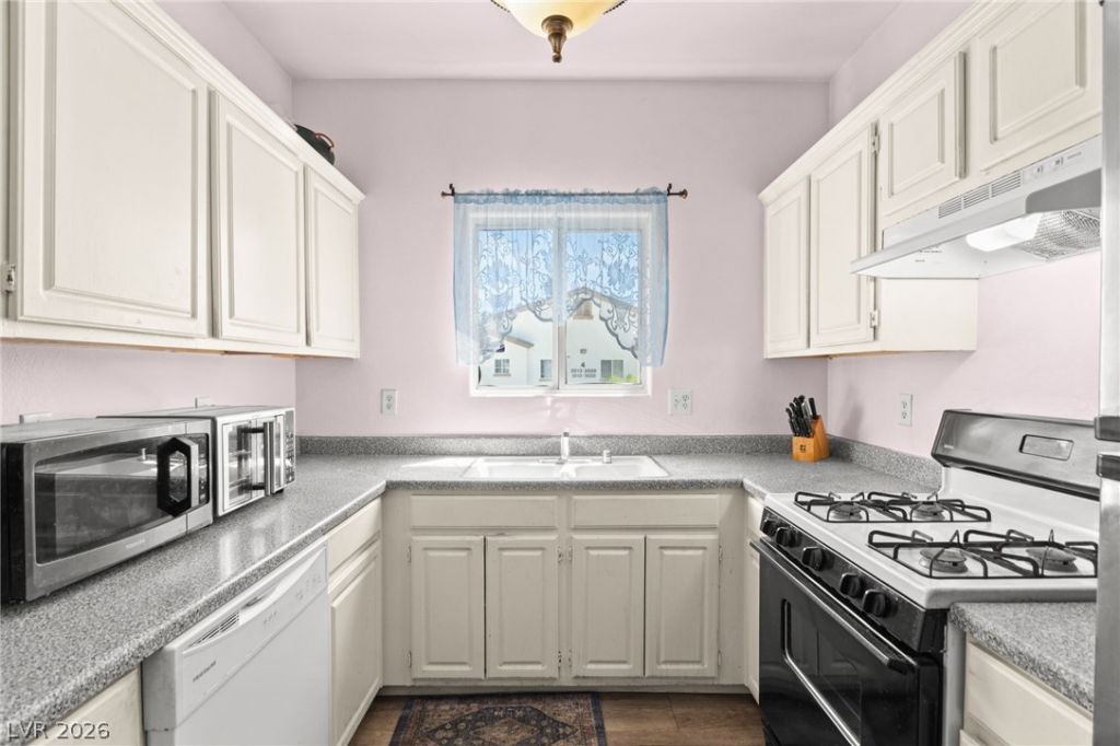 Welcome to this well-maintained 2-bedroom, 2-bath upstairs condo located in a gated community near Sahara & Nellis. This second-floor unit features a spacious open floor plan with a bright living area, a private balcony, and a desirable split-bedroom layout offering privacy and comfort. The kitchen flows seamlessly into the dining and living spaces, making it ideal for everyday living or entertaining. Both bedrooms are generously sized, and the unit includes in-home laundry and covered parking for added convenience. Residents enjoy access to community amenities including a sparkling pool, a clubhouse with a gym, and beautifully maintained grounds. Conveniently located near shopping, dining, schools, and major roadways, this location provides easy access throughout the Las Vegas Valley. Whether you're looking for a primary residence or a great investment opportunity, this condo offers comfort, convenience, and value.